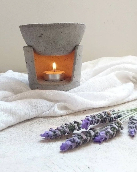 Hornito de concreto para aromatizar el ambiente que quieras. Se coloca una vela abajo y la esencia arriba para que con el calor se sienta el perfume.